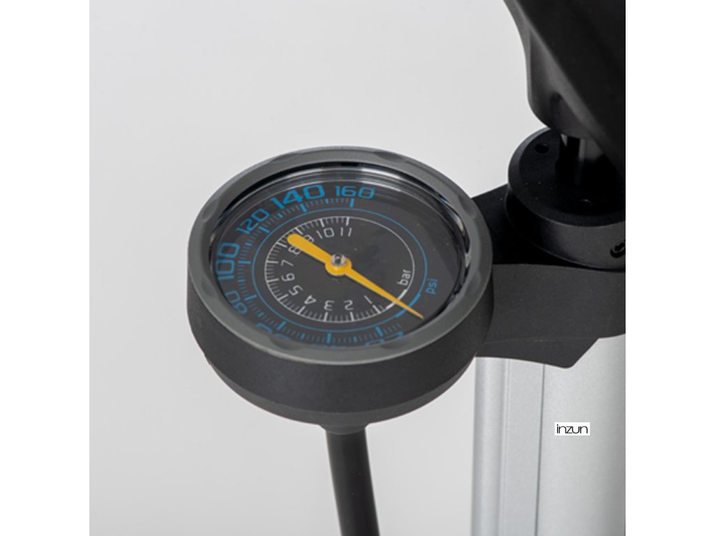 - Analogový tlakoměr umístěný ve vrchní části pumpičky.