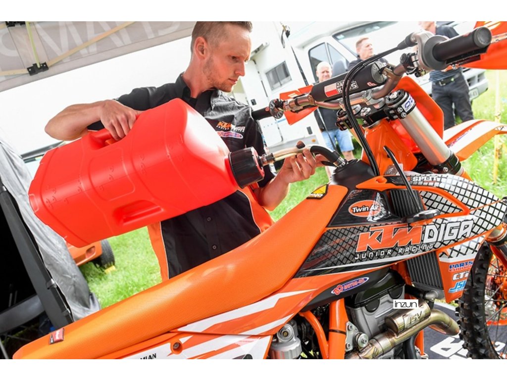 Kanystr červený PROOCTNE 10 l se standardním víčkem + 100 ml mixovací nádoba + rychloplnící ventil