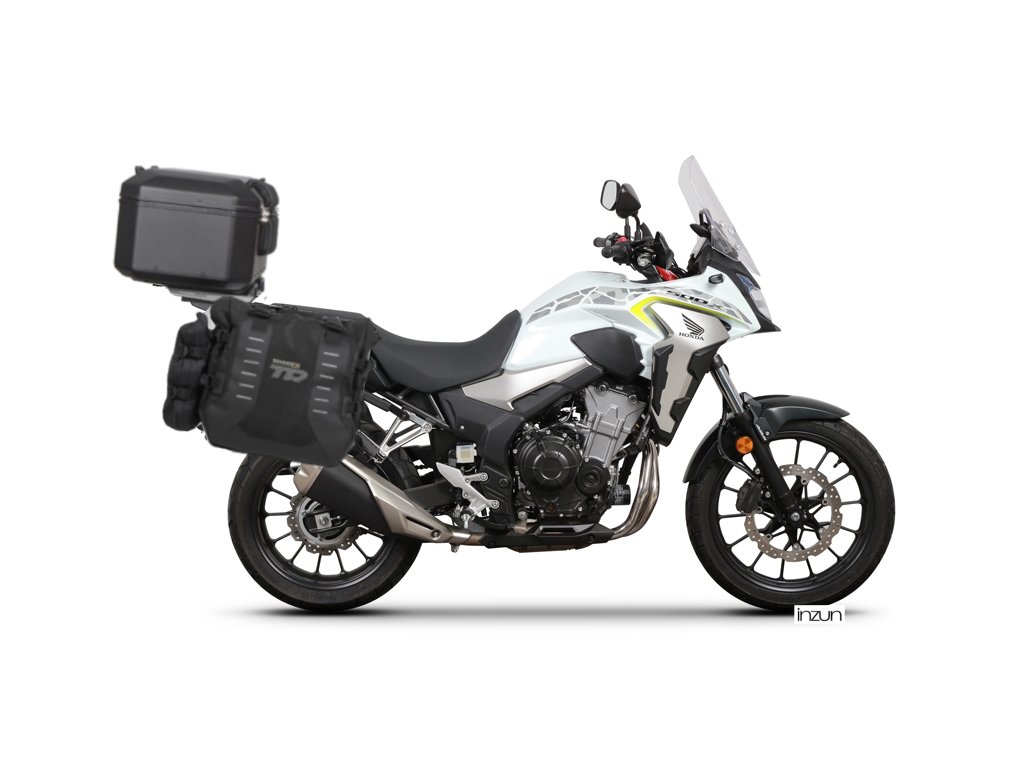 Kompletní sada bočních adventure brašen SHAD TERRA TR40 a černého hliníkového 48L topcase, včetně montážní sady SHAD HONDA CB 500 X