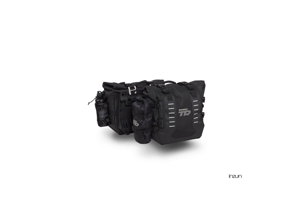 Sada ADVENTURE TERRA SHAD obsahuje sadu sedlových brašen TR40 určených pro jízdu v terénu a montážní sadu 4P SYSTÉM pro upevnění, také vrchní hliníkový kufr TR55 PURE BLACK včetně montážní sady TOP MASTER a plotny.