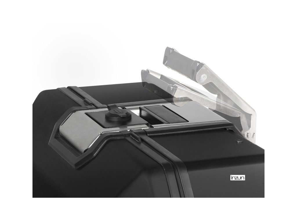 Unikátní integrovaný mechanismus zámku a madla umožňuje jednoduché ovládání jednou rukou a snadnou demontáž z motocyklu.