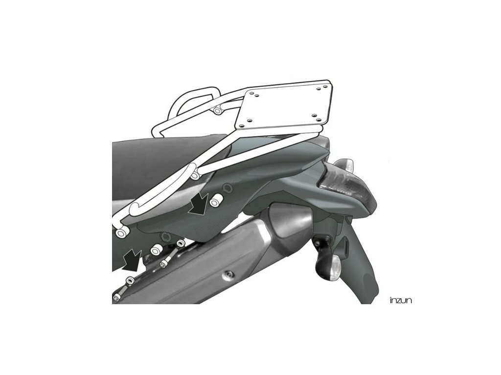 K upevnění vrchního kufru SHAD na motorku stačí namontovat tuto montážní sadu, plotna je vždy součástí kufru (kromě kufrů TR48/TR37).