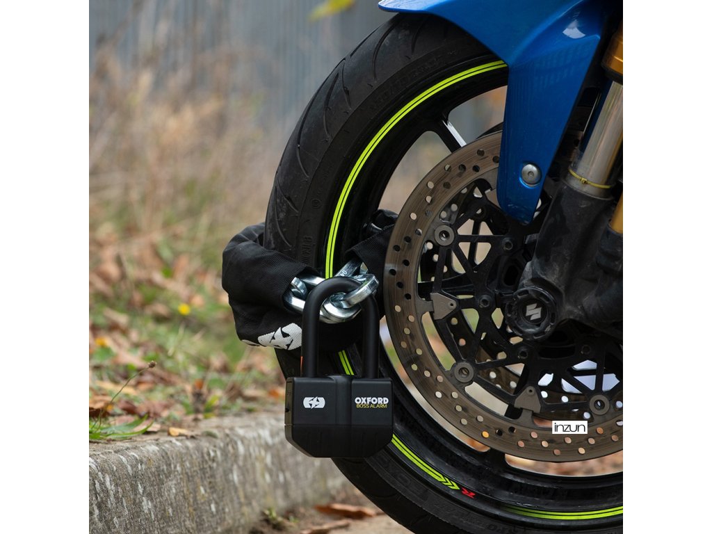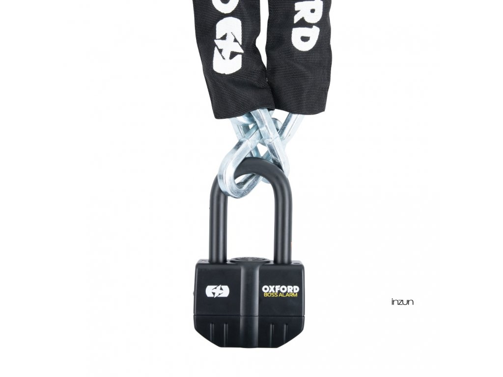 - nesilnější zámek s alarmem ze sortimentu Oxford v kombinaci s řetěžem o průřezu oka řetězu 12 mm