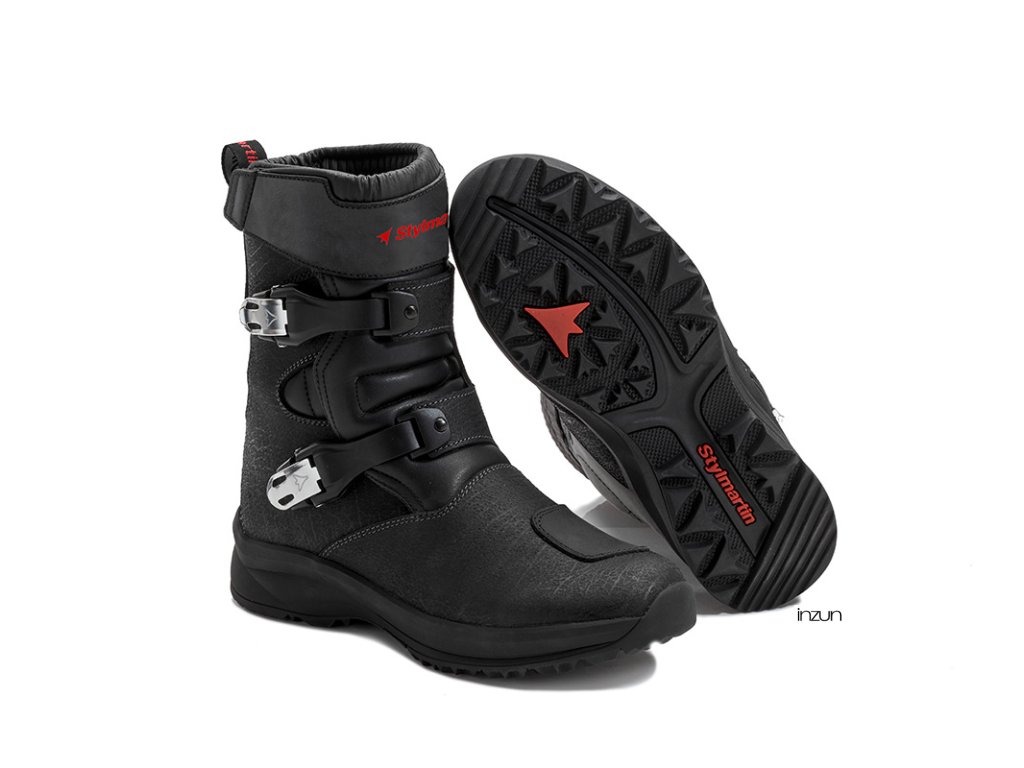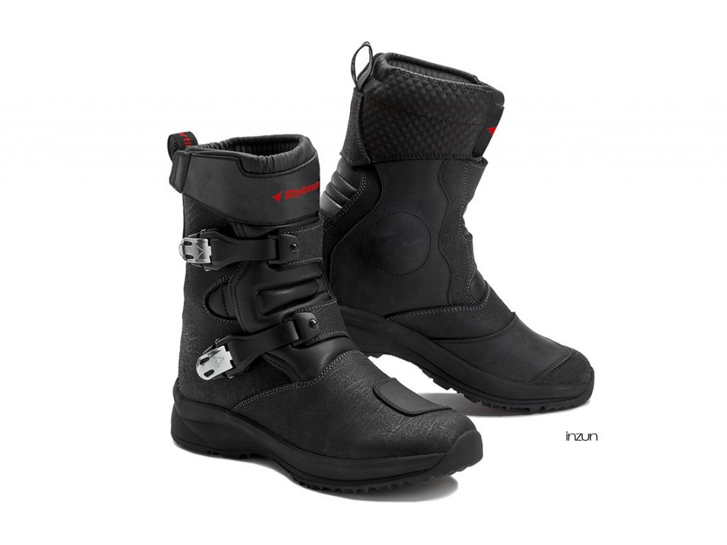 Kompletně vodotěsné, NAVAJO WP je na půli cesty mezi cestovní a terénní botou. A to díky anatomickému vnitřnímu polstrování chránící proti nárazům, ochraně kotníku na obou stranách, PU chrániči holeně s logem SM a zesílení špičky v oblasti řazení. Bezpečnost, certifikovaná podle normy EN 13634: 2017 a zaručená společností Stylmartin, zajišťuje také speciální podrážka ze 100% gumy, speciálně navržená s novým vzorem. Ta je jak protiskluzová, tak samočisticí, díky speciálnímu vzoru se střídavým vzorem výstupků, který zabraňuje ulpívání země a bláta, aby byla zajištěna maximální přilnavost na každém povrchu.