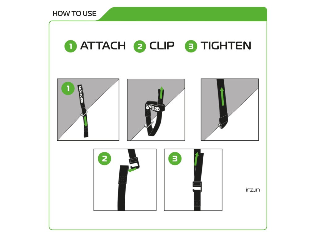 Upozornění: Nepřekračujte maximální roztažení o 50%. Nepoužívejte, pokud popruh nese známky poškození!